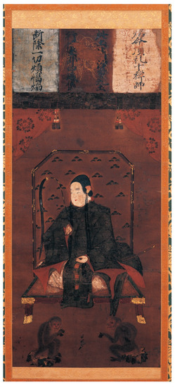 Jūzenji as a child, fifteenth century, hanging scroll, color on silk. Kokuhōden, Enryakuji, Shiga prefecture.