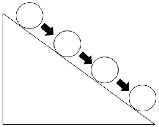 Dispositionality and qualitativity, as Martin and Heil write, must thus be ‘thought of as unrealizable limits for different ways of being of that property [trope]’ (Martin and Heil 1999, pp. 46–47, square parenthesis added). Where the ways of being a trope can be conceived, as John Levinson (1978) has noted, as the ways that a trope is. More specifically, as Levinson (1978, p. 2) writes, they are ‘the varied fashions in which it goes about the complicated business of existing’. There is thus a correspondence between the dispositional and the qualitative in such a way that they are to be taken as inseparable and correlative ‘traits’ or ‘ways’ of any given trope.27 They are ‘built into a trope’ in such a manner, as Martin and Heil note, that they are that trope, and thus, because of this, a trope’s dispositionality or qualitativity ‘cannot be abstracted as entirely distinct or separable ingredients’ (Martin and Heil 1999, p. 46). There is thus no ‘real’ distinction between the dispositionality and qualitativity of a given trope.28 That is, within the Powerful Qualities view, there is, in fact, a ‘surprising identity’ between the dispositional and the qualitative (Martin and Heil 1999). A trope’s dispositionality is not grounded upon its qualitative nature and thus is, in some sense, separable from it. Instead, a trope’s dispositionality is its qualitativity and vice versa (see note 22). (Martin and Heil 1999).Thus, whilst it might seem that the terms ‘dispositionality’ and ‘qualitativity’ are referring to two distinct and separable types of tropes, it is, in fact, that the dispositional and qualitative are identical to each other, and that each is also identical to the single unitary trope itself (Taylor 2013).29 Importantly, however, there is no ontological priority between the dispositional and the qualitative; rather, they equi-fundamental. Moreover, there is, in fact, a deflation between the dispositional and qualitative, where the same trope can simply be regarded, or considered, as a disposition or a quality. Dispositionality and qualitativity are thus not parts or sides of a given trope, but the one trope itself, just differently considered. They are, as Martin and Heil write, ‘different ways of representing the self-same property [trope]’ (Martin and Heil 1999, p. 47, square parenthesis added). For example, in illustrating this, we can turn our attention to the case of a ball and an inclined slope in Figure 2. (with the black arrows representing the dispositionality of the ball and the circular object representing the geometrical shape had by the object):