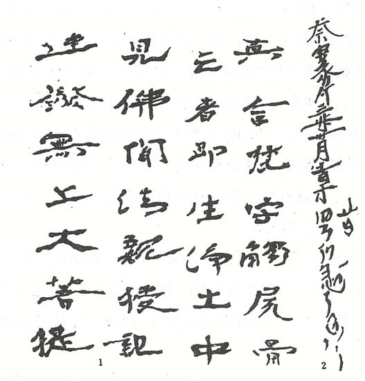 - Kim, Musaeng (김무생). 1986. Yukcha chinŏn sinang ŭi sajŏk chŏn’gae wa kŭ t’ŭkchil (六字眞言 信仰의 史的 展開와 그 特質). In Han’guk milgyo sasang (韓國密敎思想). Seoul: Tongguk taehakkyo Pulgyo munhwa yŏn’guwŏn, pp. 551–608. [Google Scholar]