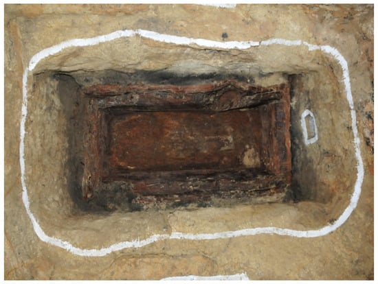 The wooden coffin construct at the Nongso Tomb at the time of discovery. After ().