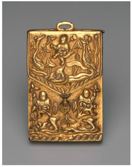 Sutra case (when opened). Koryŏ dynasty, twelfth to thirteenth century. L. 9.0 cm, w. 6.1 cm, d. 2.1 cm. Museum of Fine Arts, Boston. Charles Bain Hoyt Fund, 67.1. Photograph © [2023] Museum of Fine Arts, Boston.