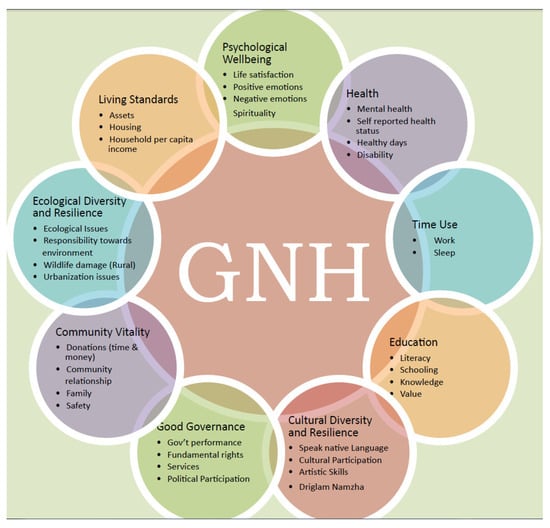 GNH index: nine domains. Source: Reprinted with permission from ().