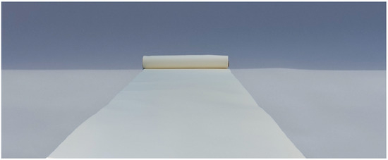 Figure 3 depicts a roll of thick paper (320 gsm) measuring 120 × 2000 cm that was prepared for drawing intervention. Due to the possibility of unwinding, the roll format was utilized in the work with the intention of continuing thoughts by adding visual data that is intuitively imposed on the artist during the composing process. Specifically, during the process of creating the work, the need arises to release additional white space as a mental and emotional break. The purity of whiteness represents a new beginning. Whiteness is the void that will be filled with signs that have not yet been given life. The silence of whiteness evokes an impression of a certain sublimity that is almost solemn. The whiteness of the paper creates a vast array of possibilities for the artist’s interventions and has a dual effect: it evokes awe and a sense of responsibility for the chosen expression, and it is intertwined with a sense of anticipation and excitement before the realization of the novel possibilities.