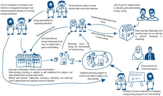 Figure 1 provides a comprehensive overview of the context and scope of the program aiming to internalize Islamic ethical values promoting energy conservation in integrated learning across both schools. The findings reveal that this program was implemented within educational institutions involving various stakeholders, such as parents at home, the government, and society at large. Figure 1 vividly illustrates the scope and context of the issue within schools, emphasizing the disconnect observed in the internalization program of Islamic ethical values concerning energy saving in both subjects and daily activities.