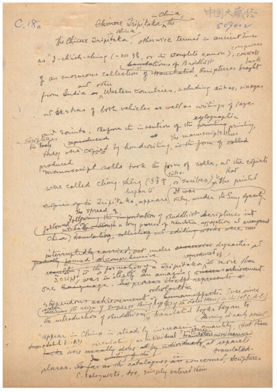 An image of the manuscript of Encyclopedia of Chinese Buddhism (Entry C18: Chinese Tripitaka). Note: The copyright of this picture belongs to Research Institute of Chinese Buddhist Culture of Buddhist Association of China (中國佛教協會中國佛教文化研究所). I have obtained an official usage permission from the institute.