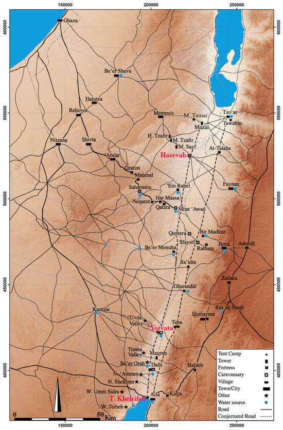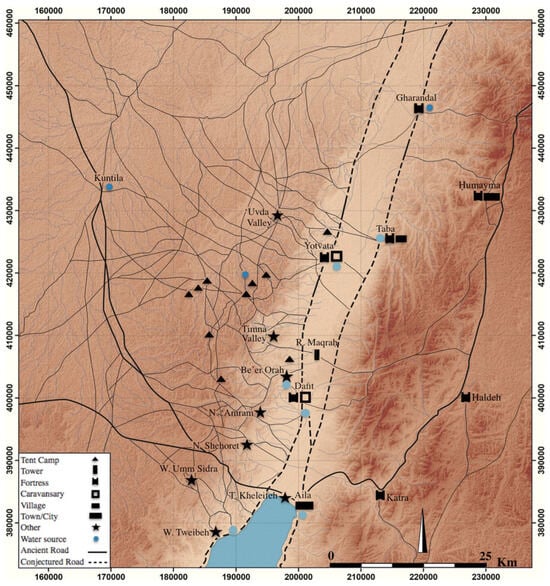 Map of the principle surveyed ancient roads in the Negev (sites are Nabataean–Roman, but the roads are much older).