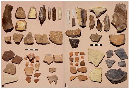 Collections of flint and pottery sherds from ancient trails, from Early Neolithic to near present: (a) Naḥal Girzi, southern Negev; (b) central ʻArabah Valley.