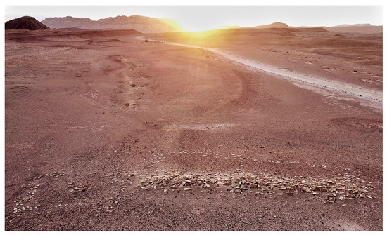 All open sanctuaries were built next to ancient roads (Figure 21c and Figure 27), while clusters of sanctuaries were built next to road junctions, for example, a cluster of 33 open sanctuaries near Jebel Ḥashem al-Taref in Sinai, 35 km west of Eilat; 4 pairs of sanctuaries at Ramat Saharonim; and 28 sanctuaries near Har Tzuriʻaz, in the southern Negev (Figure 22; Avner 1984, p. 120, Figure 2; 2002, pp. 99–100, Figure 5:2, 5:23; Rosen and Rosen 2003; Rosen et al. 2007). Some sanctuaries were built in burial sites, also located next to ancient roads and road junctions (Avner 2002, App. 1; 2020).