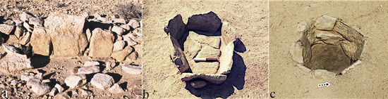 Examples of open-air sanctuaries: (a) Naḥal Paran, southern Negev (12.2 × 10 m); (b) Wadi Zalaqa, eastern Sinai (17 × 9.2 m); (c) Ramon Crater, Negev Highlands (8.2 m across).
