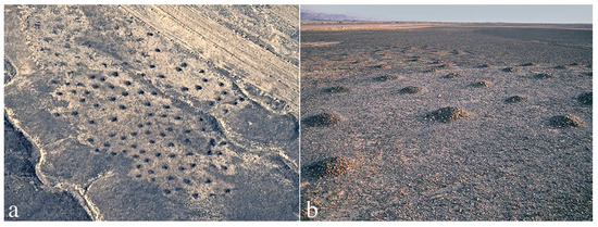 6. A separate type of group is found at a number of sites, with multiple, random numbers of detached stones, sometimes next to a pair of larger stones (Figure 20). These are interpreted as representing ancestors, set together with a pair of deities (Avner 2002, pp. 90–91; ʻArav et al. 2016).
