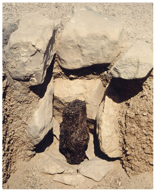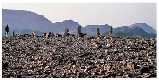 3. The earliest maṣṣebah, from Rosh Zin (Figure 10a) has been deliberately worked, identified by the excavator as phallic in shape (Henry 1976, pp. 318–20);6 however, almost all later maṣṣeboth are natural, unshaped by a human hand or an implement. Hence, the absence of shaping cannot be related to a lack of technical ability, rather to a principle, which is later eloquently expressed in the Bible: “… and if you build for me a stone altar, do not build it of hewn stones, for if you use your chisel upon it you profane it” (Exodus 20:22). This means that ‘complete stones’ were perceived as sacred, appropriate for building altars and the temple itself (Deuteronomy 27:5–6; Joshua 8:30–31; 1Kings 6:7). For the desert people, they were appropriate for representing their gods. Some 12,000 years ago, they developed a distinctive, aniconic theology. Unlike the peoples of the sown lands, prehistoric desert inhabitants did not believe that they could create their gods by making statues (cf. Exodus 20:4–5; Deuteronomy 4:28). Later, their aniconic theology (with some exceptions) was shared by the Israelites, the Nabataeans and Muslims; all had a religious belief that originated in the desert.