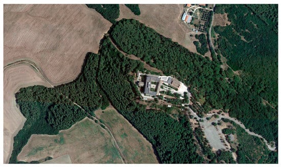 Sanctuary of Madonna di Picciano (at the center). Aerial view (Source: Google Maps 2023).