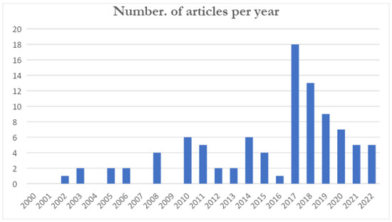 Overall, we identified 26 themes addressed in our database of articles. These were coded using the software MAXQDA.