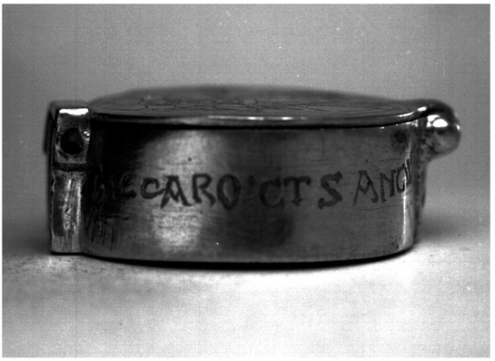 The sainte Vertu itself appears to have been invented for this occasion. There is no record of the existence of the holy prepuce of Charroux prior to the council of 1082. As previous scholars have reconstructed, the legend of the prepuce reworked older legends associated with a relic of the cross (Cabanot 1981; Treffort 2007; Remensnyder 1995, pp. 166–82). The outer reliquary capsule preserved at Charroux is a work from late eleventh-century France, contemporaneous with the miracle (Frolow 1966, p. 40; Remensnyder 1995, p. 177). It was most likely produced or acquired for the invention of the sainte Vertu. Its unambiguous inscription asserting the presence of the body and blood both anticipates and verbally reproduces the elements of the miracle. The inner, Byzantine reliquary medallion is at least slightly older, and its internal, cross-shaped relic cavity suggests that this object corresponds to the older reliquary of the true cross, appropriated and reframed by the new reliquary capsule as the holy prepuce (Frolow 1966; McNeill 2015, pp. 220–21, n. 33; Remensnyder 1995, pp. 176–77). The dramatic invention of the relic of the foreskin placed the legate Amatus at the heart of a miracle that affirmed the nascent theology of Eucharistic transubstantiation against the heretical views of Berengar of Tours and his supporters.