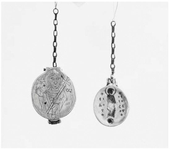 - Frolow, Anatole. 1966. Le médaillon byzantin de Charroux. Cahiers Archéologiques. Fin de l’Antiquité et Moyen Âge 16: 49–60. [Google Scholar]