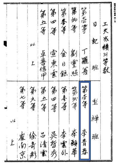 Yi Chŏngch’un receives the highest grade for sitting meditation, reported in the Wŏlmal T’ongsin 月末通信 che 12 ho, 1929.