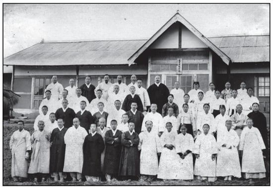 The new religious community established by Sot’aesan would aim to address the old society’s unreasonable discrimination and contradictory social structure. He believed women needed access to the same educational opportunities as men to be active in society. While Confucian values believed educating females was impractical (Maynes 2012, p. 6), Sot’aesan believed education for women would be essential in achieving equality in the community and society. Therefore, in the early years of Wŏn Buddhism, Sotaesan assembled lay and ordained students for summer and winter retreats, during which everyone received the same training. His lectures concerning his female disciples at the beginning of his ministry would demonstrate his convictions about their contemporary situation.