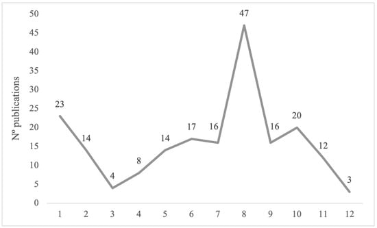 The first issue observed in this research was the centrality that this extreme right party gave to Islam and/or Muslims. Of all the publications posted by Vox on its official account throughout 2022 (N = 8653), just 2.2% (a total of 194) addressed these issues. We can observe the temporal progression of these publications in the following graph (Figure 1).