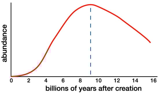 For these conditions to have been met, the host planet would have required an exceptionally high accretional heat (). That accretional heat would need to have been as great as what Earth gained from its collision (during its infancy) with the solar system’s fifth rocky planet, Theia (; ; ). This interior planetary accretional heat by itself would not have been sufficient. It would have required precise augmentation by heat from the radioactive decay of a superabundant supply of thorium and uranium. To obtain this superabundance, the host planet would need to have formed when the cosmic supply of uranium and thorium peaked. That peak occurred when the universe was about 9 billion years old (see Figure 1).