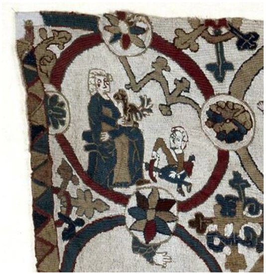 Ross 1996). Symbols, such as the Hand of God and halos over the heads of saints, have already been discussed, but the positions of characters, their sizes, and the color of the stitching also had clear meanings for contemporary readers. In all of the circles in the Svalbarð cloth, the main characters are facing the same direction: to the right. A similar sequence of readings can be found in other European tapestries and wall-hangings, such as the one preserved from Alsace in Strasbourg, which dates from around 1440 (