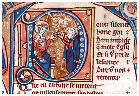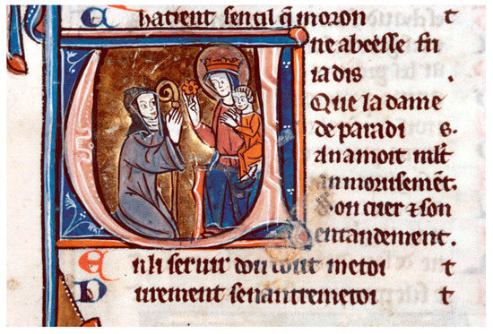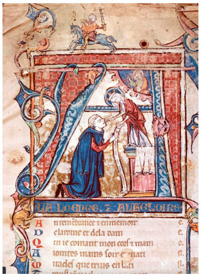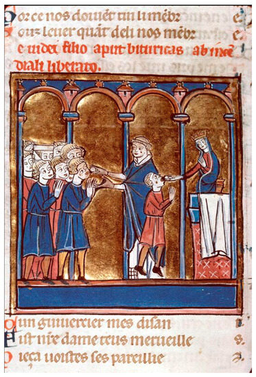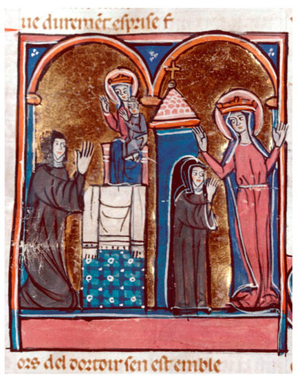 - Murcia Nicolás, Fuensanta. 2014. Educación y devoción en el MS 551 de Besançon, Les Miracles de Nostre Dame de Gautier de Coinci. Anales de Historia del Arte 24: 27–44. [Google Scholar] [CrossRef]