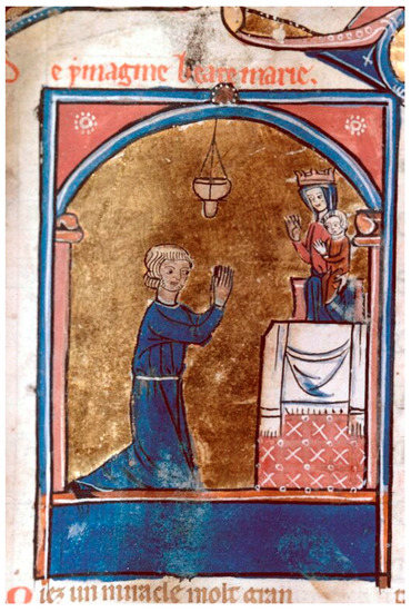 - Sansterre, Jean-Marie. 2010. La Vierge et ses images chez Gautier de Coinci et Césaire de Heisterbach. Viator 41: 147–78. [Google Scholar] [CrossRef]