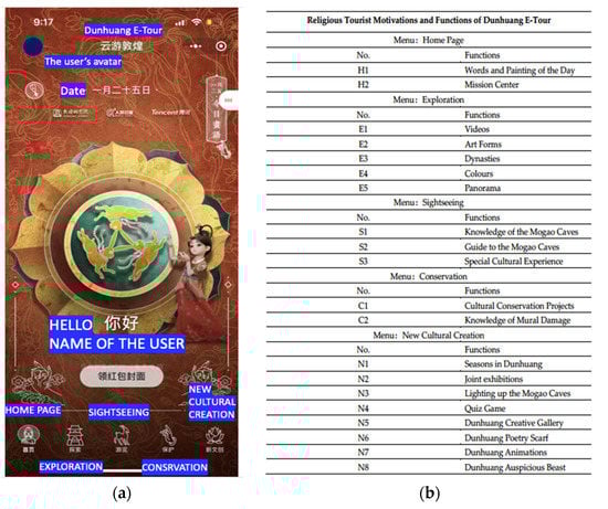 The Menu and Functions of Dunhuang E-Tour: (a) The Menu of Dunhuang E-Tour; (b) The Functions of Dunhuang E-Tour.