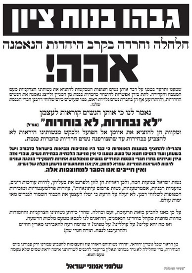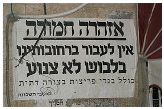 Warning Pashkevil. “Grave Warning: Don’t pass through our streets in immodest clothes”.