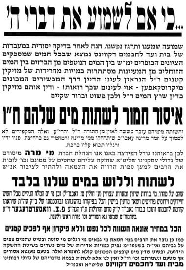 A severe prohibition to drink their water. “We heard a rumor and our soul is angered […] it has been discovered that all the water supplied by the Zionist heretics, may their names be obliterated […] have horrifying amounts of small pests hidden within them”.