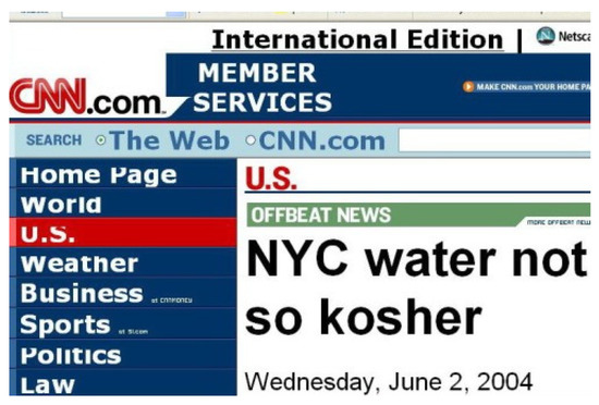 Another example of a satirical Pashkevil, which was met with unexpected reactions, paradoxically demonstrating the very phenomenon the Pashkevil aimed to condemn, relates to the Pashkevil written by Prof. Moshe Kopel and Rabbi Daniel Guttenmacher (the former grew up in a Haredi household and is currently a mathematics professor, and the latter is a yeshiva rabbi). Both authors have a tradition of writing fake Pashkevilim every year in which absurd halakhic prohibitions are usually invented. They would have them printed and pasted across the streets of Haredi neighborhood Mea She’arim in Jerusalem (Galili 2009). In one instance, the authors anonymously distributed a Pashkevil dealing with matters of halakhic severity, in which they present a new severity that ostensibly prohibits drinking “non-Jewish water” because of the microscopic creatures found in it (Figure 11). The fake prohibition was quickly circulated and even made it into a CNN newscast as a real ban (Figure 12).