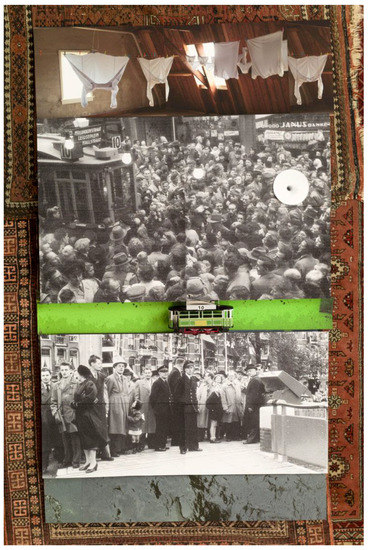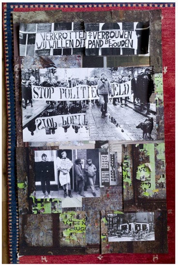 First half of the collage on the period of the squatters (1970s–1980s). They caused trouble but also preserved houses and built a social structure similar to a place where you can borrow any tool you need to fix something in your house for almost nothing, which still partially exists.
