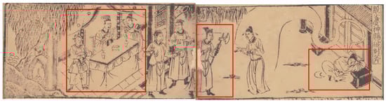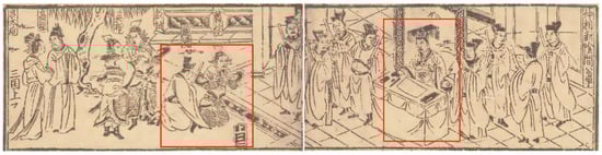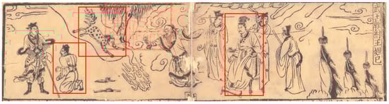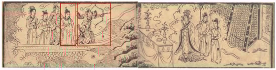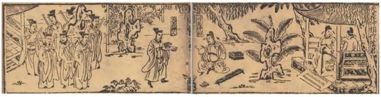It can be seen that the religious ceremony illustrations in the Yuan Dynasty’s “Quanxiang Pinghua” compromise the concepts of Confucianism, Taoism, and Buddhism and reflect the theme of the enlightenment of benevolence and righteousness, loyalty and filial piety, and leading to goodness. With the help of religious scenes, such as retribution and good and evil karma, the rituals in the illustrations of the fiction construct moral concepts in the context of Caesaropapism. Daniel Stevenson believed that “in individual practice, these ritual programs are seen as indispensable supplements to observing behaviors and the mind. Their special logic presupposes the concepts of cause and effect in previous lives and good and evil karma, and their characteristics need to be described and processed to become an indispensable part of the training of practitioners”. The fiction’s illustrations are a portrayal of the folk religious concepts of leading to goodness, benevolence, righteousness, and filial piety in the Jianyang area during the Yuan Dynasty, reflecting the ethical enlightenment and belief standards of the public ().