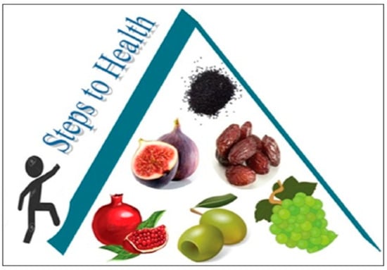 In the Holy Quran, Allah has recommended that “eat what is lawful and good in the Earth (Quran 2:168)”. Searching through the Quran further, we can identify what foods are beneficial; these include honey (Quran 16: 68–69) vegetables such as corn and herbs (Quran 55: 12), and fruits such as olives, dates, grapes, pomegranates (Quran 6: 99–141), and bananas (Quran n.d.). All of the foods recommended by Islam are scientifically proven to boost the immune system. Increasing immunity increases the rate at which wounds heal. All the mentioned foods and fruits are full of energy and they have a high medicinal value. Fruits mentioned in Figure 1 are also considered as the fruits of heaven by Muslims. Islam gives a special importance to these fruits.