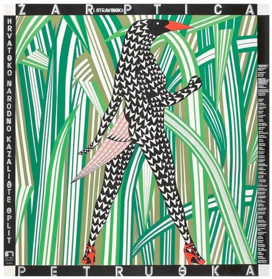 Boris Bućan, “Stravinsky, The Firebird and Petrushka” (poster for a performance at the Croatian National Theater (HNK), Split), 1983.