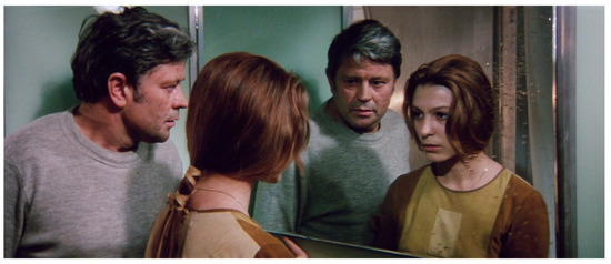 Two years earlier, on another shot, in this case Solaris (1972, dir. Andrei Tarkovsky), the third feature film by the renowned Russian director, who especially appreciated Bresson’s filmography, had made the mirror motif a symbol with an equally significant meaning. spiritual. It is a shot in which the leading couple, Kris Kelvin (Donatas Banionis) and Hary (Natalya Bondarchuk), see themselves reflected in the same mirror (Figure 3). Both in Bresson’s and Tarkovsky’s films, as before in Ozu’s or Cocteau’s, the mirror, or the pupil as a mirror, is the intermediate imaginal plane of transit from the sensible to the intelligible world, from the visible to the invisible.