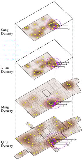5. Spatial Distribution Evolution of Buddhist Monasteries in Xi’an City Area