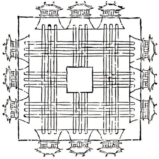 - Wang, Shusheng. 2004. Preliminary Analysis of Planning Methods of Xi’an Urban Pattern in the Beginning of Ming Dynasty. Urban Planning Forum 5: 85–88+96. [Google Scholar]