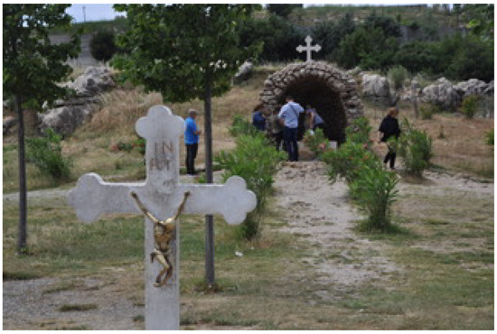 The sacred place of Laç is an example of how the material destruction did not prevent the immaterial and material remains from surviving, and they survive in the memory of the place, in the sacredness that is sedimented in the soil, in the hill, in the space. Nevertheless, the materiality of the recent reconstruction has had a strong impact on continuing the tradition of the pilgrimage since it not only involved the building of the religious place—the church—par excellence, but it also involved some adjacent and pertinent places, statues, and infrastructures to support its management and good functioning.