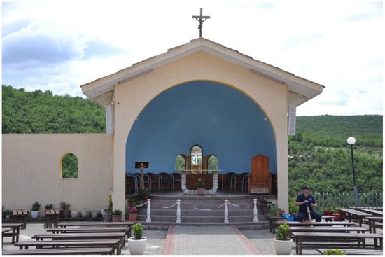 - Giakoumis, Konstantinos. 2016. From religious to secular and back again: Christian pilgrimage space in Albania. In Pilgrimage, Politics and Place-Making in Eastern Europe. London: Routledge. [Google Scholar]
