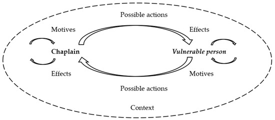 As we see in this case study, vulnerable persons such as Anna may seek pastoral accompaniment from a chaplain like Peter. A chaplain is ‘a clergyman or layperson who has been commissioned by a faith group or an organization to provide pastoral services in an institution, organization or governmental entity’ (Smith 2005, p. 136). It does not matter whether Peter is a clergyman or a layperson. His mission is to provide pastoral services. We propose our own definition of pastoral accompaniment: ‘an empowering companionship between a pastor and a conversation partner, whereby the pastor, inspired by the Christian tradition, community and spirituality, supports the conversation partner in his or her own quest for meaning and/or faith in life’ (Liégeois 2013, pp. 202–3). This concept of pastoral accompaniment is fundamentally relational because the companionship between chaplains and the other persons is central. Chaplains are companions who share the vulnerable persons’ search for meaning or faith. In that search, chaplains can help clarify meaning or faith, as well as further deepen that meaning or faith. Above all, accompaniment is an empowering companionship. The goal of pastoral accompaniment is that chaplains, through this relationship and search for meaning or faith, strengthen vulnerable persons to take responsibility for their lives.