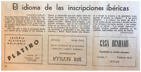 - Sayahi, Lofti. 2006. ‘Aquí Todo El Mundo Hablaba Español’: History of the Spanish Language in Tangier. The Journal of North African Studies 9: 36–48. [Google Scholar] [CrossRef]