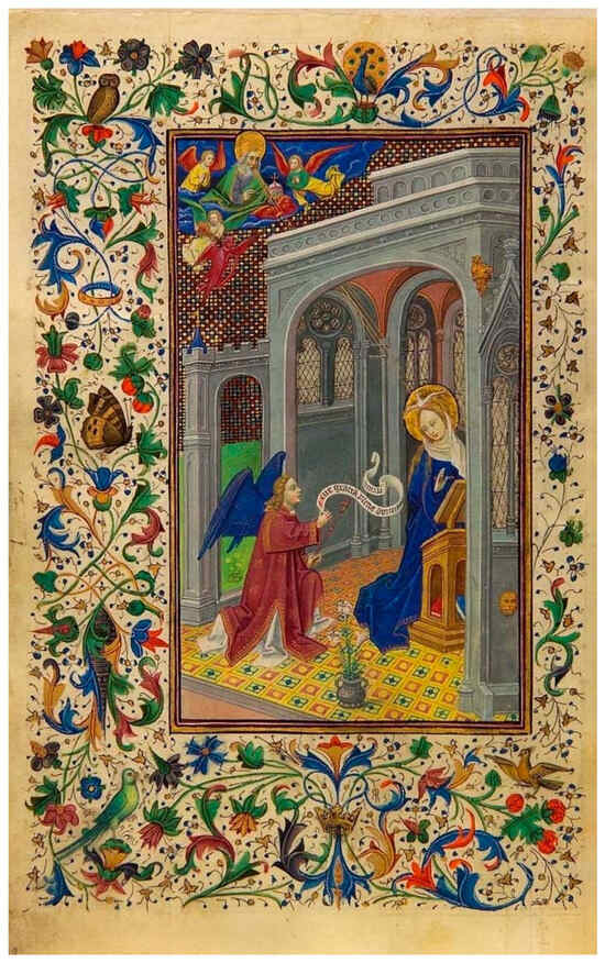 Annunciation, Book of Hours of Juana Enriquez, fol. 89v, ca. 1447–1468, © Biblioteca del Palacio Real de Madrid.