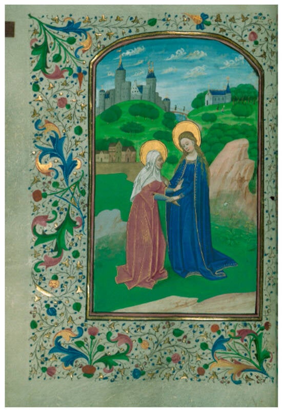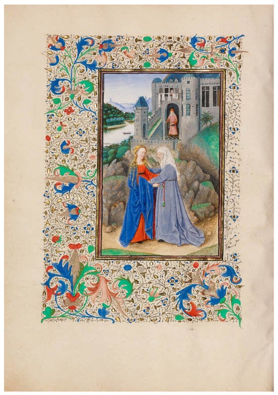 Visitation, Book of Hours of Juana Enriquez, fol. 91v, ca. 1447–1468, © Biblioteca del Palacio Real de Madrid.