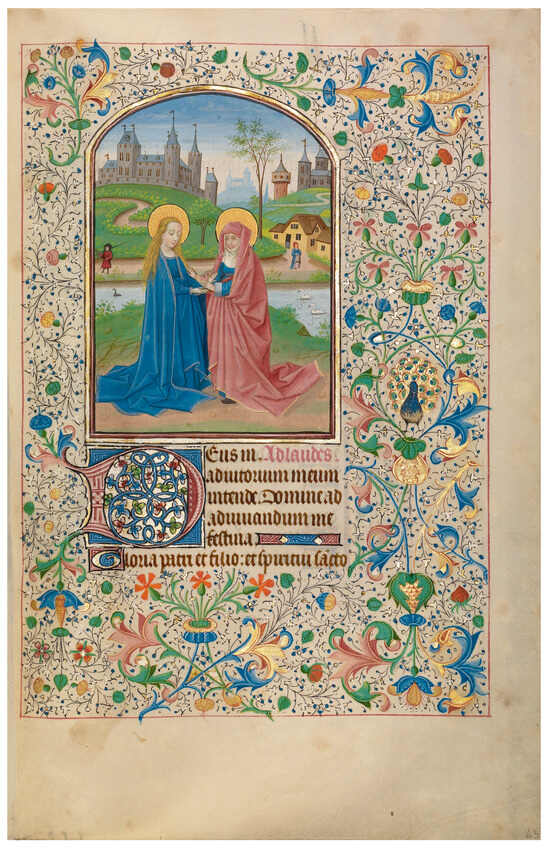 Visitation, Hore beate marie virginis secundum consuetudine(m) romane ecclesie (ms. W.240), fol. 183v, ca. 1450–1460, © Walter Art Gallery, Baltimore.