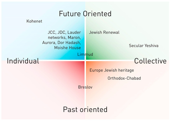 As a cultural idiom, the term revival reflects a sense of crisis and discontent with the present state of Judaism (often deemed “stagnant”) and a wish to rectify and transform it. It marks a turning point and rupture, “a symbolic template of collective self-recognition at the moment of turning between old and new” (Geertz 1973, p. 219). We identify two temporal articulations of the present with the past and the future: past-oriented and future-oriented. In terms of the past, movements of renewal use the past as “an infinite and plastic symbolic resource, wholly susceptible to contemporary purposes” (Appadurai 1981, p. 201). Thus, although some Orthodox revival tends to submit the past to strict discursive and ritual constraints, other strands of Orthodox traditionalism are New Age or messianic, hence future oriented. Similarly, some Reform and Reconstructionist trends of Judaism are very much oriented toward the past (Werczberger 2011).