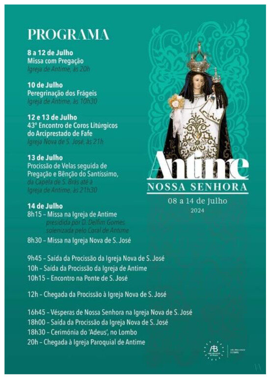 Programme for the festivity in honour of Our Lady of Antime—8–15 July 2024. Source: Paróquia de Antime (2024).