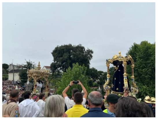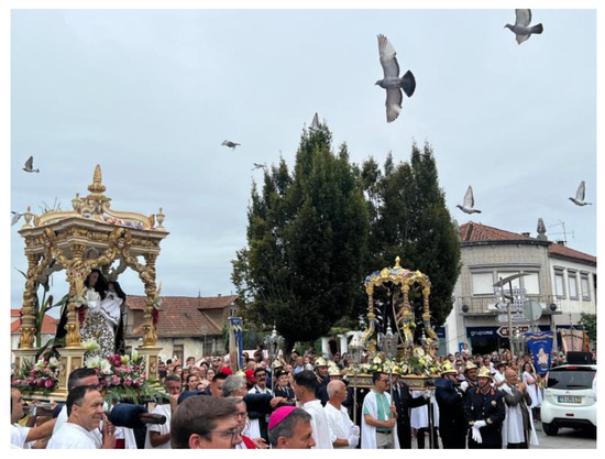 - Lemos, Rui. 2024. Senhoras de Fafe voltaram a peregrinar ao lado de uma multidão emocionada. Diário do Minho—Jornal diário de informação regional e de inspiração cristã. Available online: https://www.diariodominho.pt/noticias/religiao/2024-07-15-senhoras-de-fafe-voltaram-a-peregrinar-ao-lado-de-uma-multidao-emocionada-6694fff6cc22d (accessed on 27 September 2024).