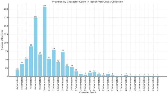 Number of proverbs by character count in Joseph Van Oost’s collection.