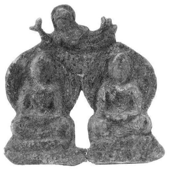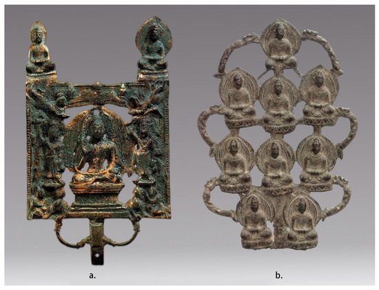 - Li, Jingjie 李靜傑. 2016. Beiwei jintong foban tuxiang suofanying jiantuoluo wenhua yinsu de dongchuan 北魏金銅佛板圖像所反映犍陀羅文化因素的東傳 [On Gandhara Culture Spreading to the Orient Reflected by the Golden-Bronze Buddha Plates’ Images of Northern Wei Dynasty]. Gugong Bowuyuan Yuankan 故宮博物院院刊 5: 27. [Google Scholar]