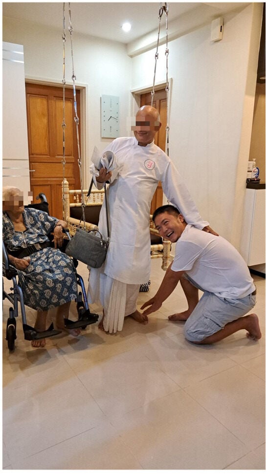 Flügel notes that the Samans and Samanis have gained significant popularity among diasporic Jains globally, leading to increased mobility in their travels and a strong interest in religious education (). The Saman who arrived in Singapore this time is a Śvetāmbara Terapanth Saman based in Rajkot, Gujarat. Many Jains in Singapore have informed me that they frequently travel from India to Singapore to deliver religious discourses, regardless of whether the attendees are Śvetāmbara Terapanth Jains or not. Vekamans discusses the contrast between common assumptions regarding the absence of mendicants and the actual, albeit limited, presence of these figures. By examining a case in the USA involving a traveling sādhū, the analysis highlights how such interactions illuminate the practice of Jainism as it is experienced, understood, and enacted by various individuals in contemporary settings () (See Figure 2).